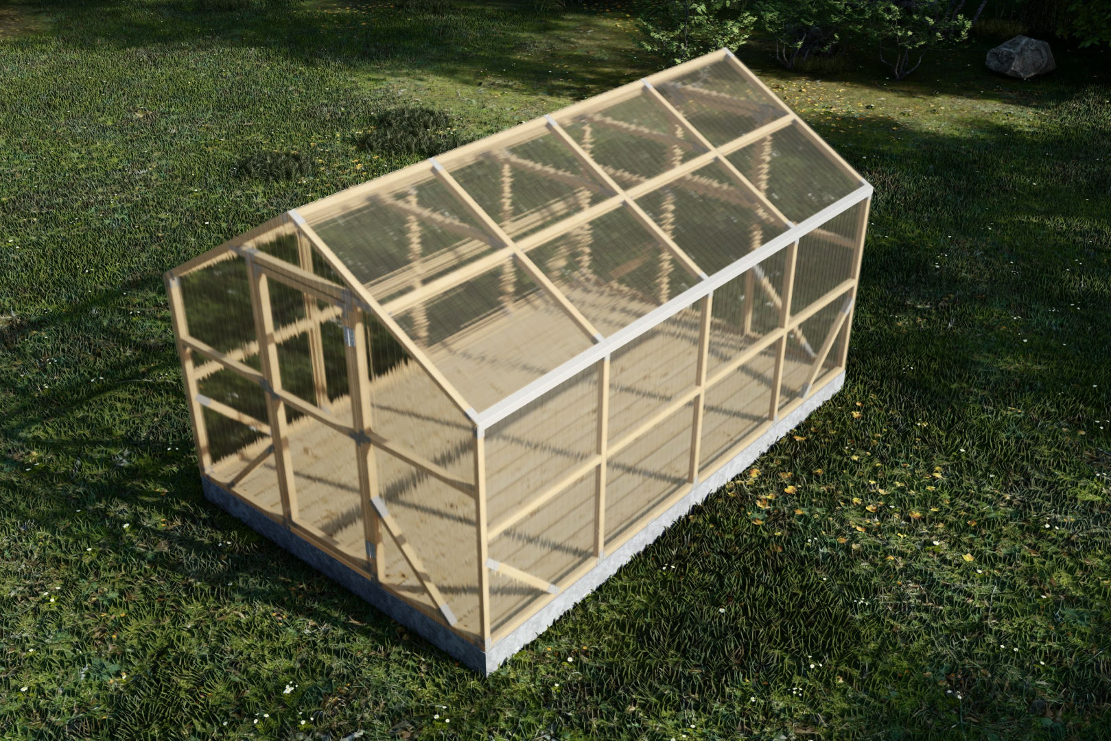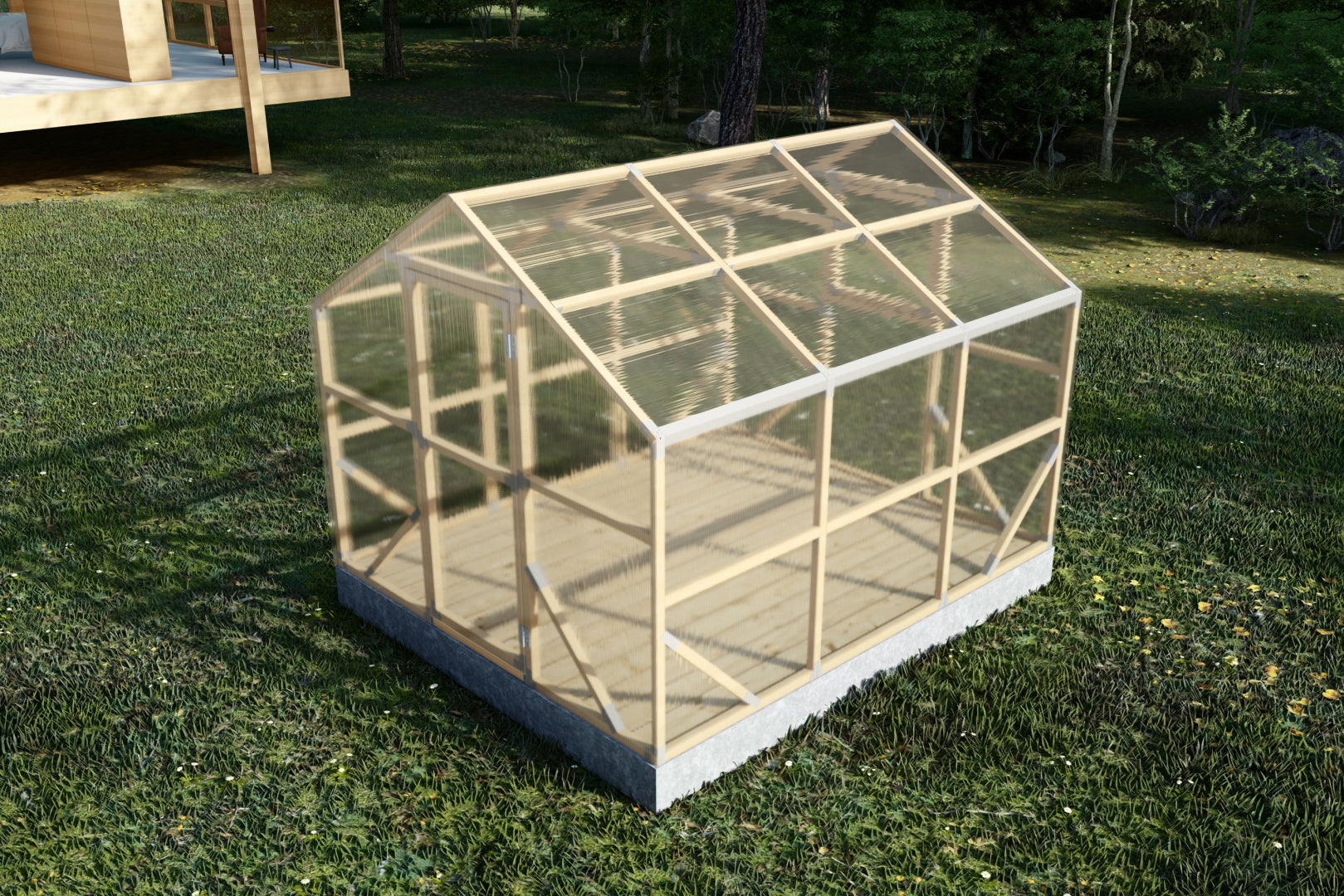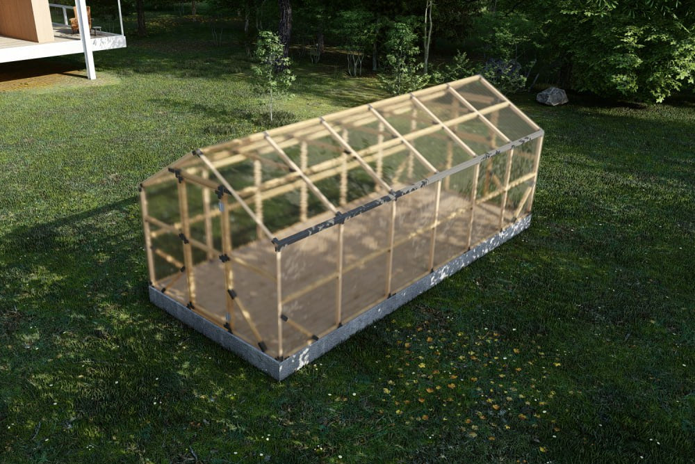 Premium 4m polycarbonate greenhouse with 45x45 mm impregnated Swedish pine frame. Storm-resistant, warm and durable – ideal for UK gardens and allotments.