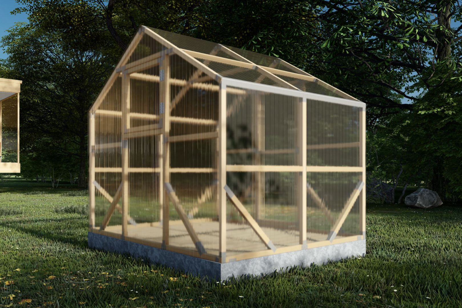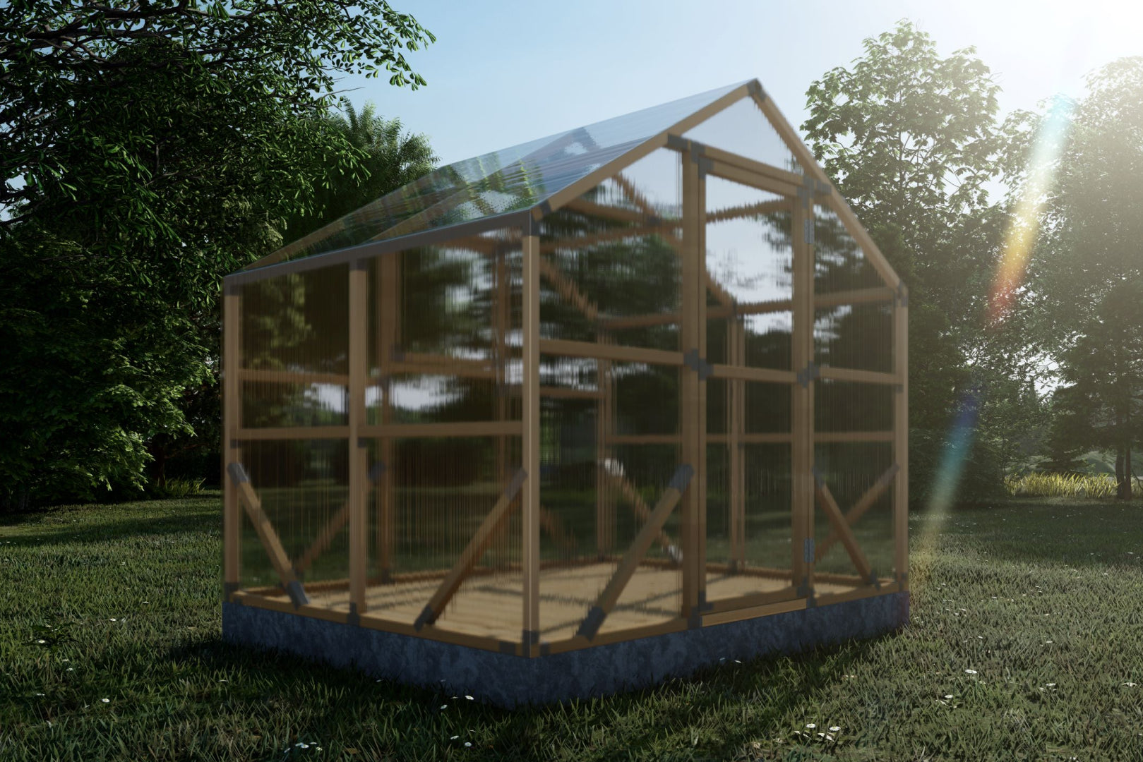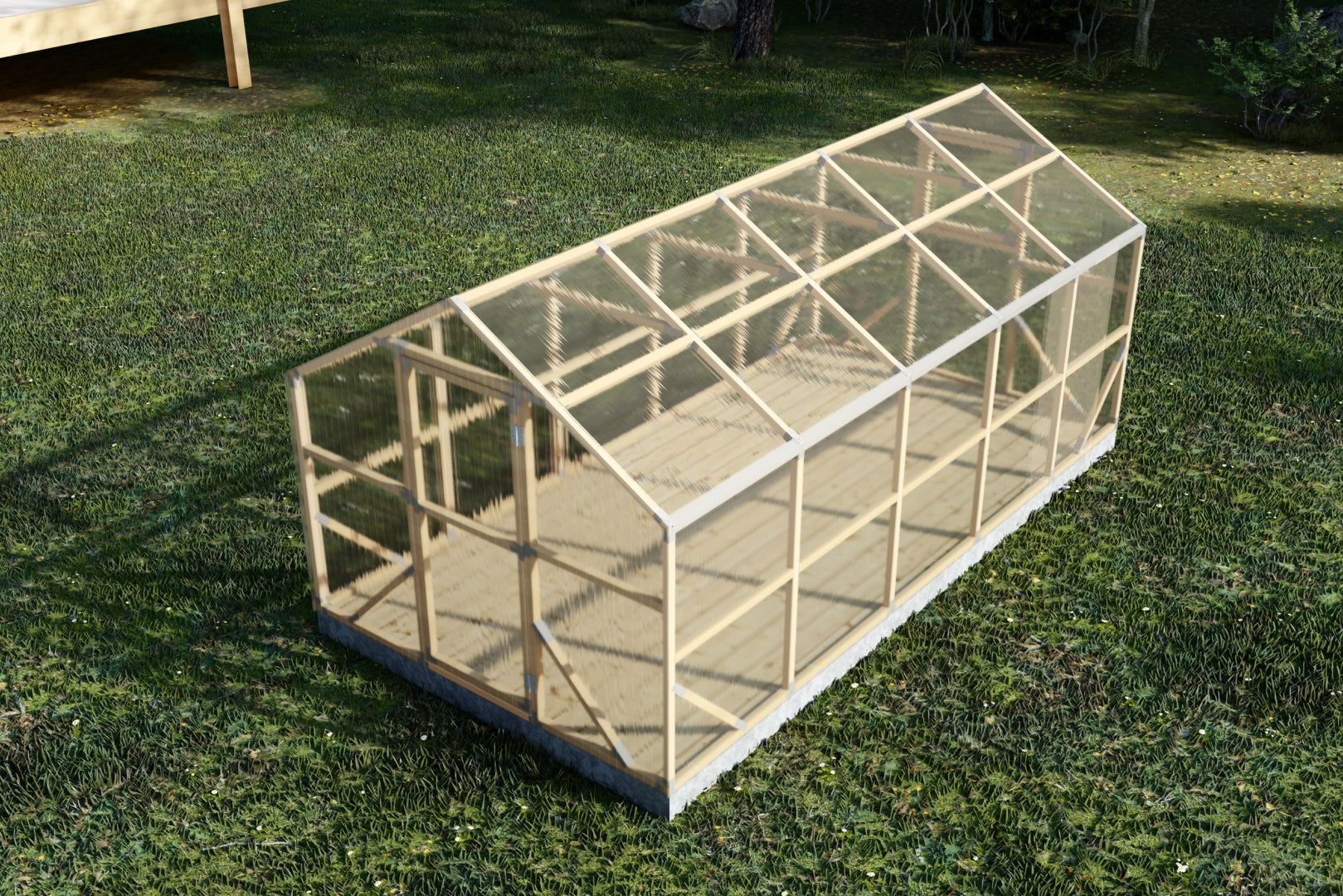 Premium 4m polycarbonate greenhouse with 45x45 mm impregnated Swedish pine frame. Storm-resistant, warm and durable – ideal for UK gardens and allotments.