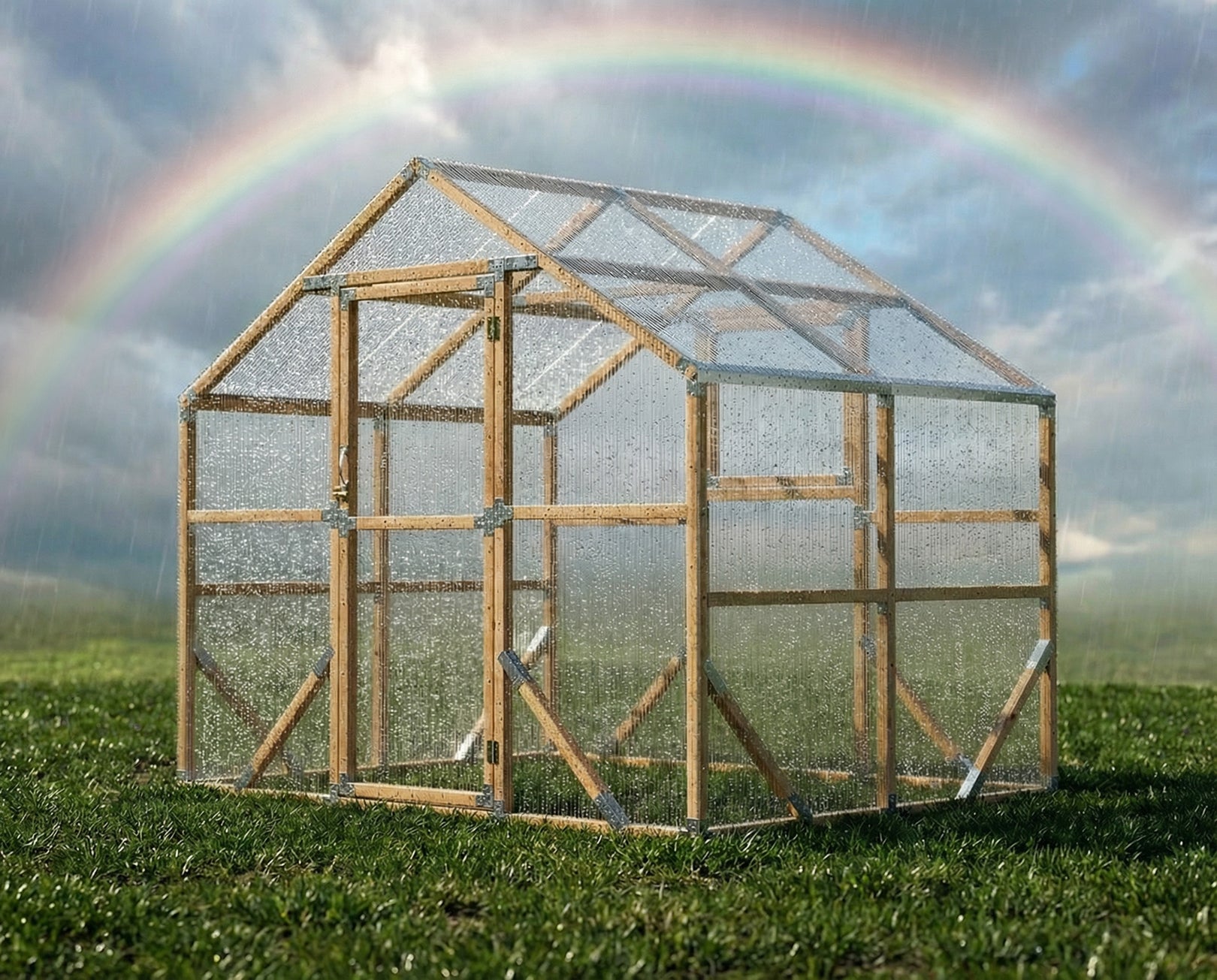 All glazing panels are mechanically screw-fixed, not clipped. This prevents panels from lifting or loosening during storms, one of the most common failure points in traditional greenhouses.
