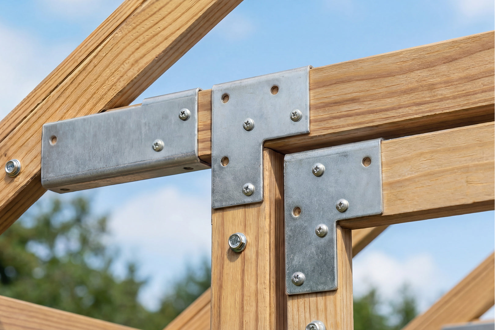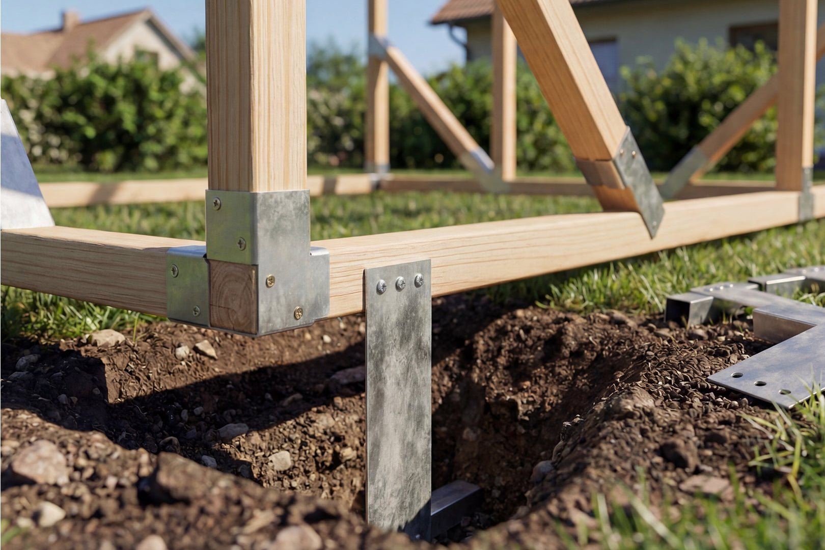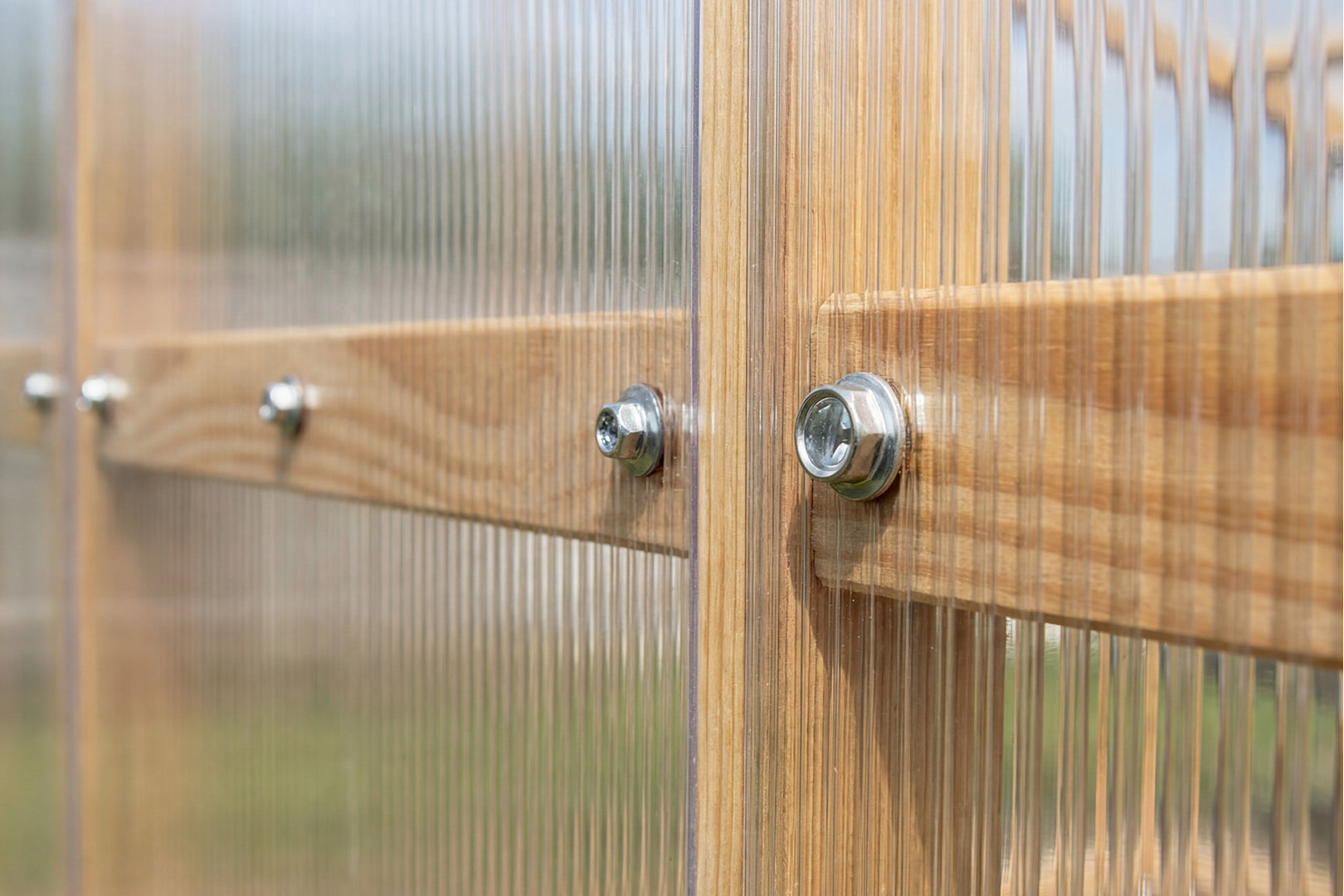 Each Waldenhaus greenhouse uses 45 × 45 mm structural timber, reinforced at key joints with 1.2 mm galvanised steel